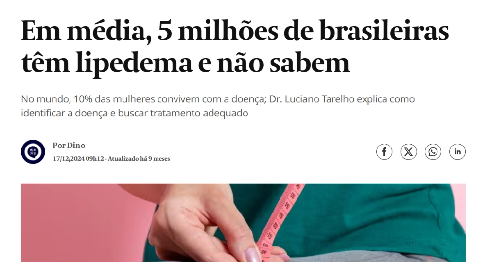 No Brasil, mais de 5 milhões de mulheres podem ter lipedema e não sabem, conforme indicativos do Instituto Lipedema Brasil. A nível mundial, 10% das mulheres convivem com a doença, que causa acúmulo anormal de gordura no corpo, principalmente nas pernas e no tronco.