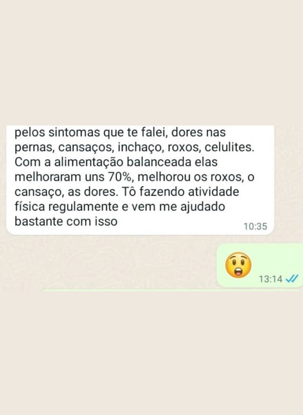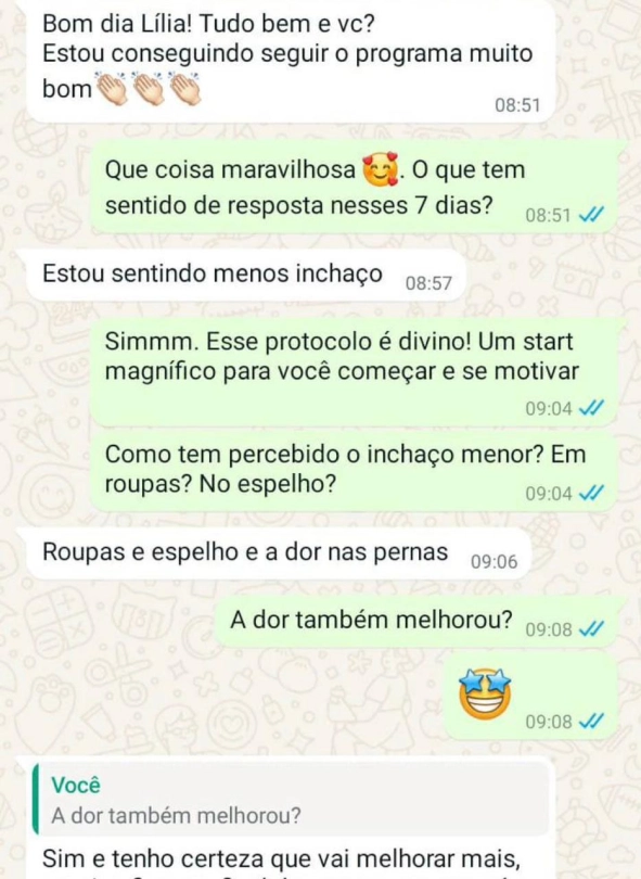 A maioria das mulheres relata redução de até 2cm nas pernas, menos dor e inchaço em apenas 15 dias. Mas isso depende do seu corpo e do quanto você aplica as ferramentas.